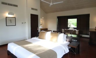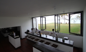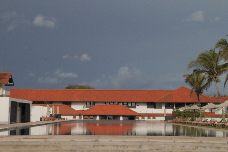 開業当時のオーナーと父親同士が友人だったジェットウィング会長のヒーラン・クーレイは、子供の頃、父に連れられ初めて旧ブルーラグーンホテルを訪ねた時の思い出が、今回の決断に影響を与えたと語っている。100mの巨大なラッププールや増設した客室棟など、新しく加えた施設もあるが、レストラン、バーをはじめ、多くの建物がオリジナル。客室では「バワ・スイート」「バワ・ルーム」とネーミングされているものがオリジナルの建物だ。住宅や学校が多かった初期の仕事を反映してか、全体にこぢんまりとして、住宅に近い印象を受ける。だが一方で、バワの物語を知らなければ、きわめてスタイリッシュないまどきのホテルに見える。それだけ彼の建築が、リゾートとしての完成度が高かったということだろう。ニゴンボという便利な立地は、スリランカ到着の一泊目や最終日の宿泊にも便利。だが、バワの作品をいくつか見た上で泊まると、その奥深い魅力がより味わえると思う。ホテルの敷地は一方が波の穏やかなラグーンに、そしてもう一方が道路を隔てて、波の打ち寄せるビーチに面している。オリジナルのプールはビーチ沿いにあり、そこにはいくつかのヴィラも建てられていた。現在、ビーチ側のエリアも修復中。来年には、ヴィラなど新しい施設が加わる予定だ。