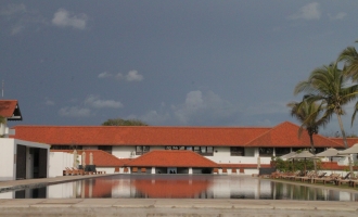 熱帯建築家ジェフリー・バワが注目される理由のひとつは、彼が多くのホテル建築を手がけたことだろう。祖父母ゆかりの地であるゴールの「ライトハウス」や、シギリヤロックなどの多くの世界遺産で知られる文化三角地帯にある「カンダラマ」など、いくつも有名なホテルがあるが、今年、大規模なリノベーションを経て、再オープンした注目のバワホテルを紹介したい。空港に程近いネゴンボに位置する「ジェットウイング・ラグーン」だ。ネゴンボは、仏教国のスリランカにあってキリスト教徒の多い、独特な雰囲気のある漁師町である。1965年、「ブルーラグーンホテル」という名前で開業したホテルは、バワが最初に設計したホテルであり、同時にスリランカで最初のリゾートホテルだった。1980年代半ばまで営業していたが、その後、忘れ去られ廃墟のようになっていたのをバワの代表作、「ライトハウス」を運営するスリランカのホテルチェーン、ジェットウィングが買い取り、バワ建築の魅力を最大限に生かしつつモダンなリゾートホテルに再生したのだ。