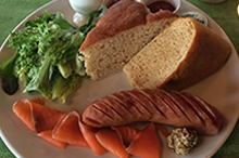 トマムの広大なフィールドを贅沢に使った、本格的なスノーアクティビティも充実している。たとえば、クロスカントリースキーで極上の朝食を目指すプログラム。リフトやゴンドラが動きだす前の朝の時間に、クロスカントリースキーを装着して、インストラクターに道案内をしてもらいながら、約2キロ先の山の中腹にあるカフェ「Mt. Cafe RAP」を目指す。雪面は夜のうちに降り積もった雪でふかふか。誰も足を踏み入れていない白樺の木立を自由に歩き、新雪の上にあらたな轍をつくりながら進んでいると、いつの間にか子供のように走り出したくなってしまう。 はらはらと舞う雪や、朝焼けに輝く山の斜面の美しさに見とれながら歩いていると、あっという間に目的のカフェに到着。 ランチタイムは大勢のスキーヤーやボーダーで賑わうこのカフェも、朝の時間は貸切り。 大きな暖炉に迎えられ暖かな店内に進むと、店長の奥様が淹れたてのコーヒーで迎えてくれる。 そして、大きな自家製パンと手作りソーセージ、北海道産のサーモンと野菜がたっぷり盛られたボリューム満点の朝ごはん。身体の中にも北海道の大地のパワーを取り込んだ頃、朝一番のパウダースノーを目当てに早起きしたであろうスキーヤーたちが、ゲレンデに登場し始めた。
