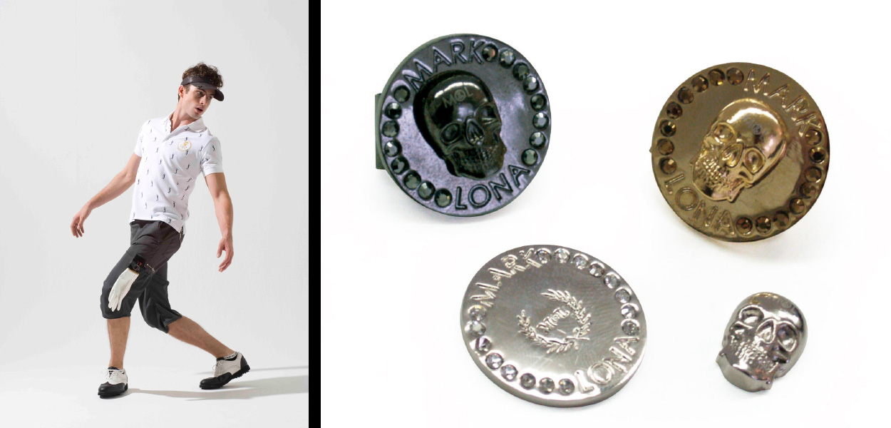 貿易会社を営み世界中を旅するMARKと、キャメロン・ディアスを始め、ハリウッド女優からご指名のメイクアップアーティストLONA。「多忙を極める2人が芝の上で束の間のプレイを楽しむ時、そのスタイルはリラックスムードと同時に、フェアウェイという絨毯に映えるハイエンドなデザイン性を兼ね備えたものでなければならない」とデザインチームは話す。スカルマークをアイコンに、ゴルフギアのクロスボーンや、「BUNKER YOU」「GOLF OR DIE」といった遊び心のあるコピーなど、従来のウェアに飽きたゴルファーたちのアンテナをくすぐるユニークなラインナップ。吸汗即乾素材や立体裁断を使用し、通気性や保温性でも充分フィールドに絶えうる機能性を持ち合わせている。