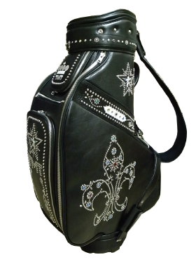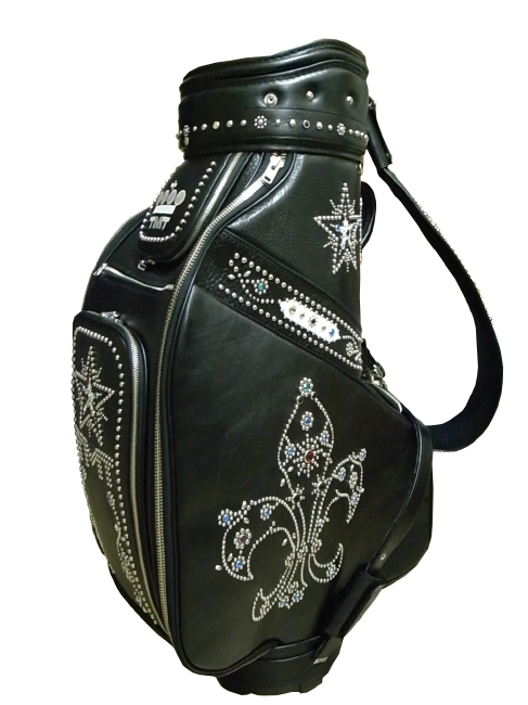 TMT classicから登場したキャディバックは、そんなゴルファーたちの貪欲なファッション性向にとどめを刺す、超弩級の受注生産アイテム。オール本革で、クラシックなサイズの10型ボディに、3000個を超えるスタッズ、カラーストーン、リザードなどを日本の職人が数日かけて混ぜ打ち。艶やかなオイルドレザーに描き出された王冠、百合、星などのモチーフは、ちょっと他にはない圧倒的な存在感を醸し出す。また、0.8~2mmまでの厚さの革を部位によって使い分けるなど、強度や使い勝手の良さにも十分配慮。ただ目立つだけのキャディバッグでないのは、使ってみればわかるはず。