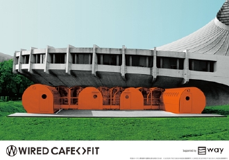 丹下健三設計による国立代々木競技場第二体育館に隣接したオレンジの建物が「WIRED CAFE<>FIT」。公園内という立地を生かし、インドアとアウトドア、両方のフォールドを活用したエクササイズを楽しめる。館内にはロッカー&シャワー設備も完備。