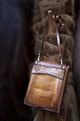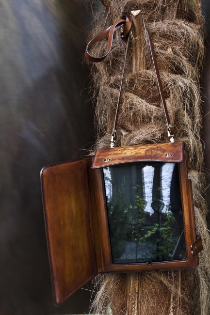 iPadを収納するためにデザインされたベルルッティらしいエスプリの効いた専用バッグ。美しいヴェネツィア・レザーを贅沢に用いた希少性の高いプレミアムアイテム。iPadを収納した状態で立てて置いてデジタルフォトフレームにしたり、平らに置いてキーボートとしても活用できる。