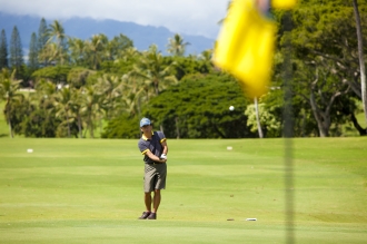 予選当日は晴天に恵まれるも、スタート数ホール目に事件は起きた。思いがけず破れたパンツのポケットから、ハワイの金毘羅神社で必勝を祈願して忍ばせてあった“ゴルフ御守”が紛失。