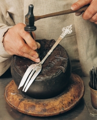 遡ること1830年に宝石商であったシャルル・クリストフルが義兄のジョセフ・アルベール・ブイエと共に会社を設立。銀食器といえば重たい純銀製だった時代に、職人たちによる独自技術で、「シルバープレイト」を商品化。フランスでは当時、一部の貴族階級を除き、食事は手で食べるのが普通で、ナイフやフォークはアスパラガスを食べる際に気取って使うものだった。それを考えれば、高品質で実用的なクリストフルのカトラリーは、フランスの食文化に大きな変化をもたらしたのは言うまでもない。