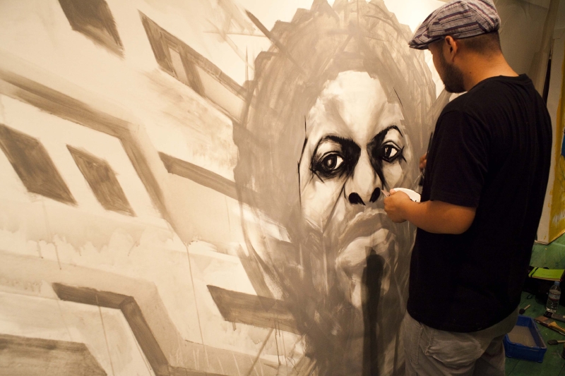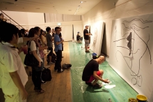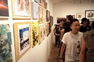 原宿のGallery COMMONにて開催された、ストリートカルチャーから派生したアートを中心に、アーティスト約50名の作品が一堂に会したこの展覧会。暑い夏夜となった初日のオープニングレセプションでは、アーティスト5名がライブペインティングを披露し、ゲストはシンハービールでのどを潤しながら、思い思いに彼らのクリエイトを愉しんだ。