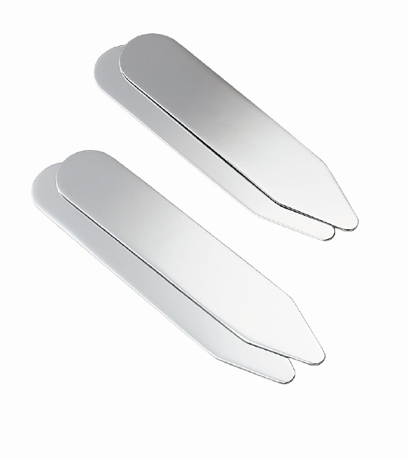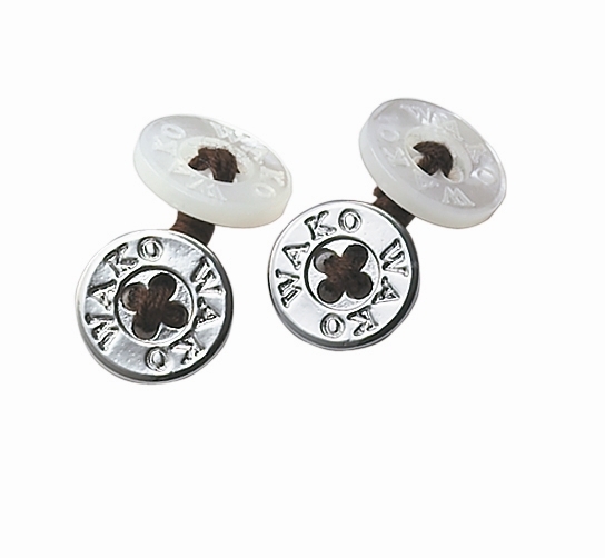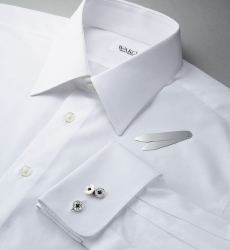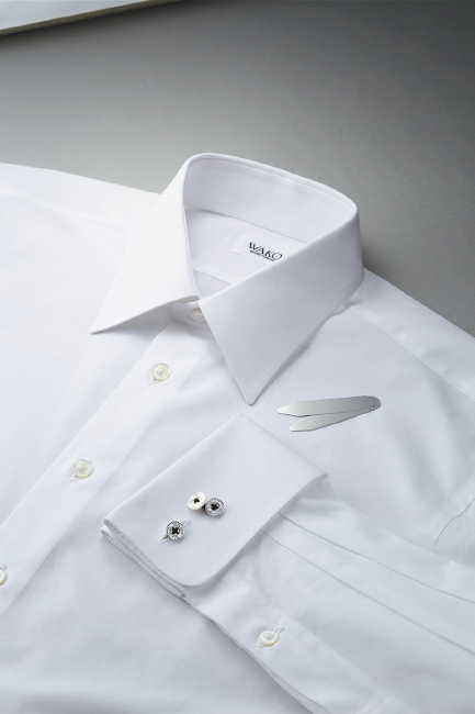 シルバーの襟芯、白蝶貝とシルバーを組み合わせたカフスボタンなど、ありそうでない、洒脱なアイテムが揃う。