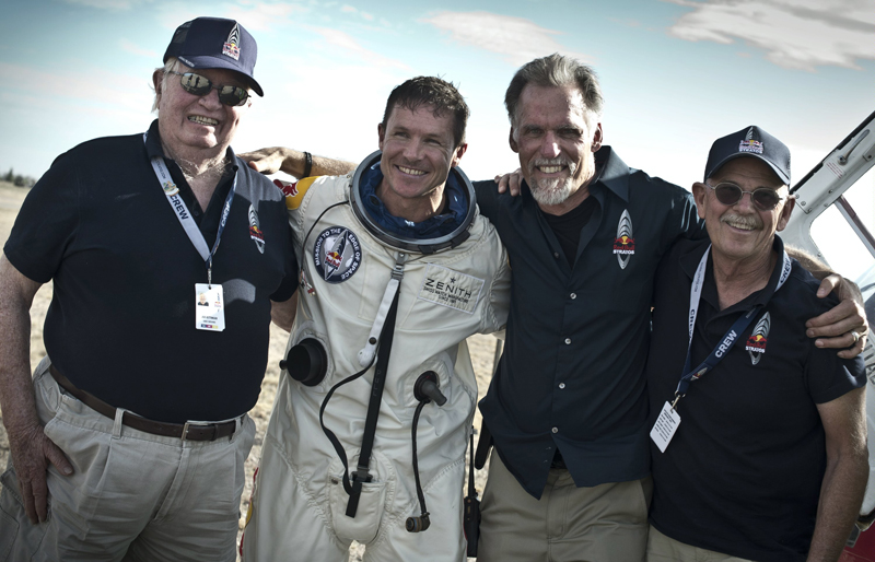 自らの命を守る専用スーツに身を包んだバウムガートナー氏は、気球にて目標とした同高度まで上昇し、ダイビング。落下中はフリーフォールにて最高時速862キロを記録し、着地に成功したという。