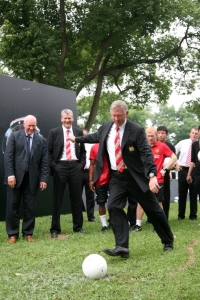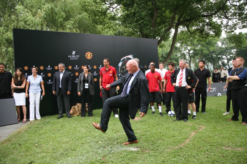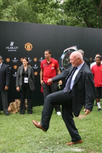 気になる結果の方はといいますと、当日は多くの観客が集まり熱い声援が送られる中、一人ずつシュートを放ちましたが、惜しくもゴールは決まらず! 彼らに続いてマンチェスター・ユナイテッドのサー・アレックス・ファーガソン監督やウブロCEOのジャン・クロード・ビバー氏も挑戦しましたが、残念ながら誰一人ゴールさせることはできませんでした。最後はビバー氏自らゴールへボールを運び、約束の10万ドルに1万ドル加えた11万ドルをHOPE Foundationに寄付する結果に。