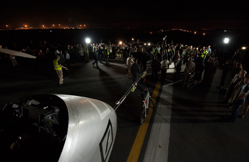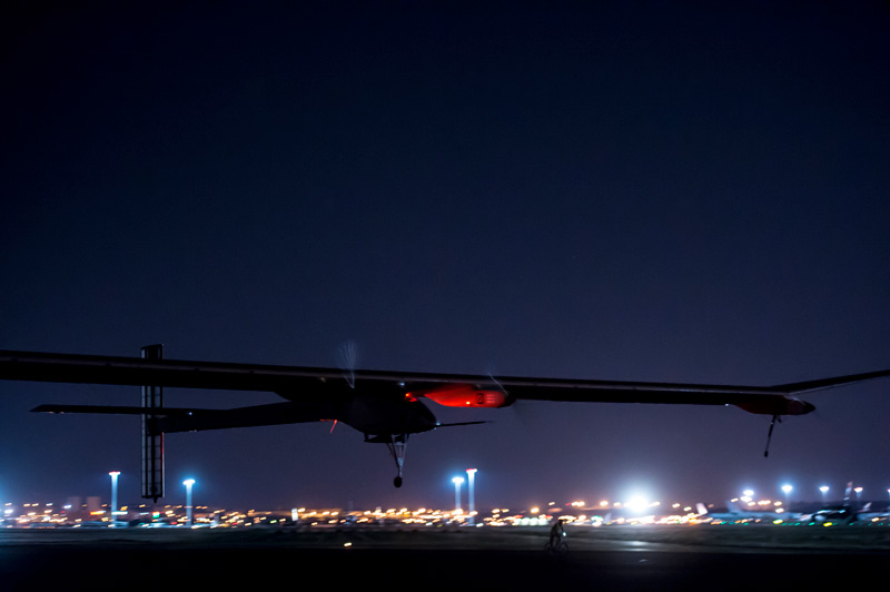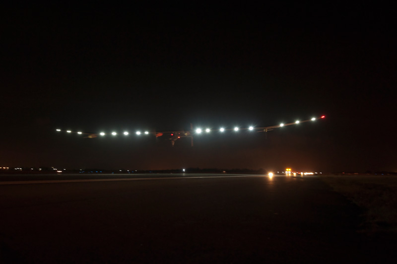 そして6月5日5時22分、いよいよスペインからアフリカ大陸のモロッコに向かってゆっくりと離陸した。ジブラルタル海峡、地中海の上空を越え、モロッコのラバト・サレ空港には同日の23時30分に到着。闇に包まれた真っ暗な滑走路に淡い光を放つ「ソーラー・インパルス」機が、静かに舞い降りた。830kmの距離を19時間8分で飛行、平均時速は51.8kmだった。
