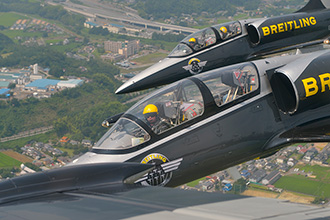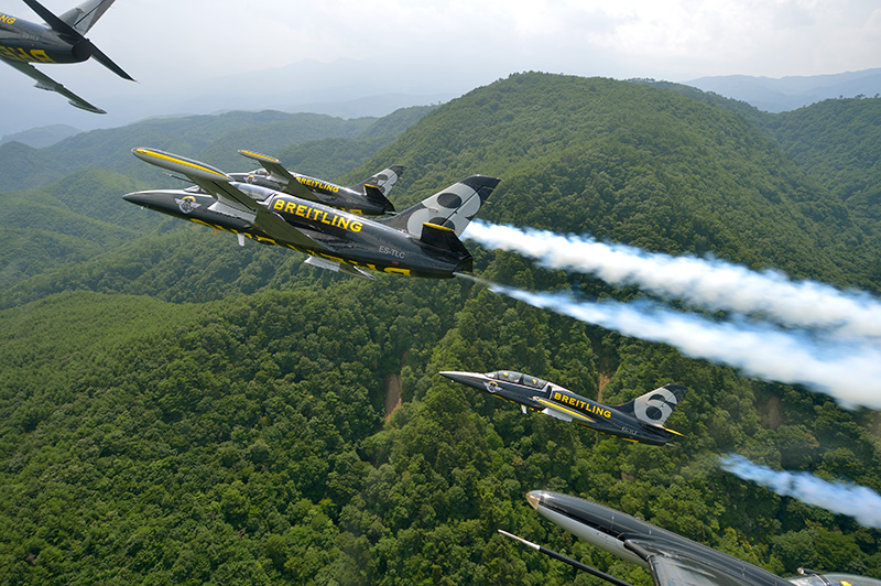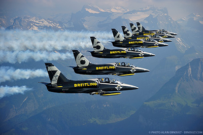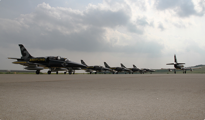 約100年前からパイロットのための計器をつくり続けているブライトリングにより、2003年に結成。民間では世界最大となるジェット・エアロバティックスチーム(ジェット機を使ったアクロバット飛行を行うチーム)である。