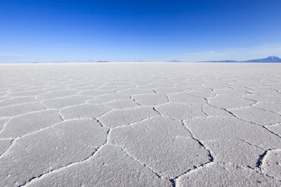 昼間の青空は漆黒の闇に移り変わり、無数の星々がその闇の中で瞬いている。標高4000mに位置するウユニ塩湖は空気が澄み、星がとても近く見えるような錯覚を受ける。真っ白な大地は星明かりを受け、青白く滲み始める。